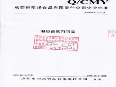 成都市明扬食品有限责任公司企业标准Q/CMY0001S-2016