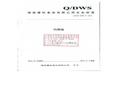 瑞丽傣旺食品有限公司企业标准Q/DWS0004S—2016