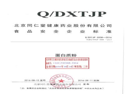 QDXTJP 0008-2016 北京同仁堂健康药业股份有限公司 蛋白质粉