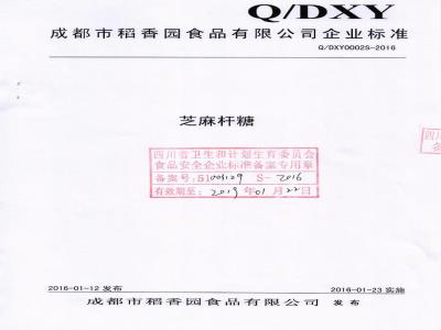 QDXY 0002 S-2016 成都市稻香园食品有限公司 芝麻杆糖