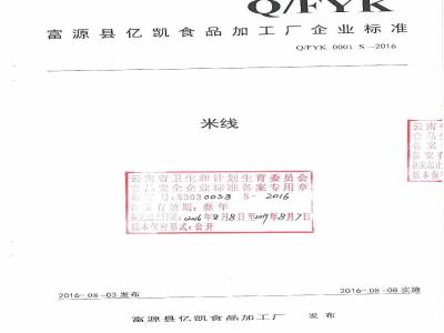 中文名称:富源县亿凯食品加工厂企业标准 米线
