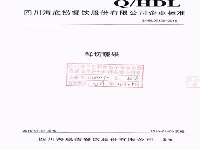 四川海底捞餐饮股份有限公司企业标准Q/HDL0012S-2016