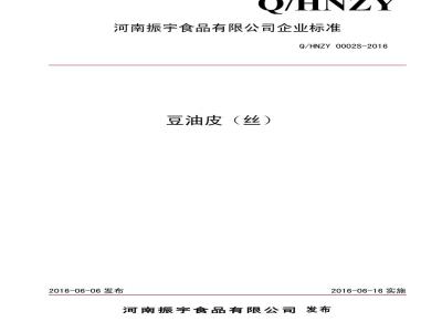 QHNZY 0002 S-2016 河南振宇食品有限公司 豆油皮(丝)