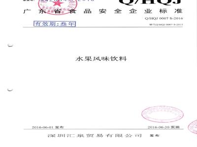 QHQJ 0007 S-2016 深圳汇泉贸易有限公司 水果风味饮料
