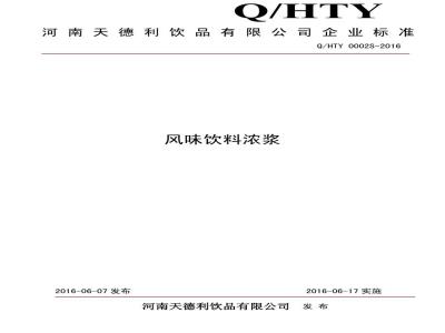 河南天德利饮品有限公司企业标准Q/HTY 0002S-2016