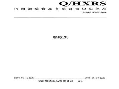 QHXRS 0002 S-2016 河南旭瑞食品有限公司 熟咸蛋