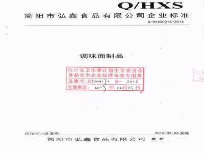 简阳市弘鑫食品有限公司企业标准Q/HXS0001S-2016