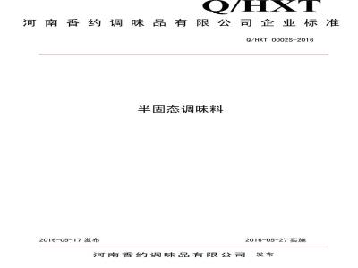 河南香约调味品有限公司企业标准Q/HXT 0002S-2016