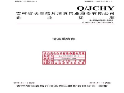 QJCHY 0003 S-2016 吉林省长春皓月清真肉业股份有限公司 清真熏烤肉