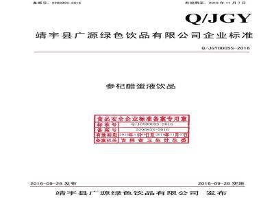 QJGY 0005 S-2016 靖宇县广源绿色饮品有限公司 参杞醋蛋液饮品