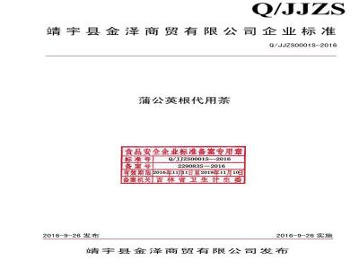 QJJZS 0001 S-2016 靖宇县金泽商贸有限公司 蒲公英根代用茶