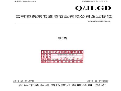 吉林市关东老酒坊酒业有限公司企业标准Q/JLGD0010S-2016
