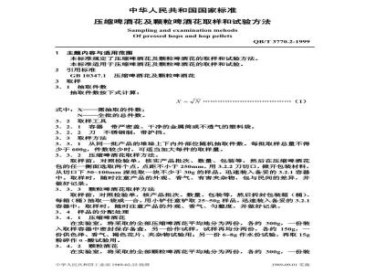 压缩啤酒花及颗粒啤酒花取样和试验方法SamplingandexaminationmehodsOfpressed hops and hoppelletsQB/T3770.2-1999