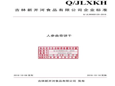 QJLXKH 0013 S-2016 吉林新开河食品有限公司 人参曲奇饼干