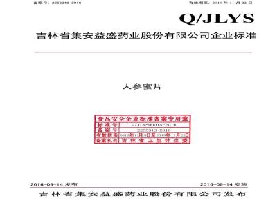 吉林省集安益盛药业股份有限公司企业标准人参蜜片