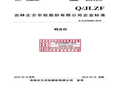吉林正方农牧股份有限公司企业标准Q/JLZF0006S-2016