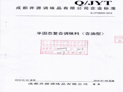 成都井源调味品有限公司企业标准Q/JYT0003S-2016