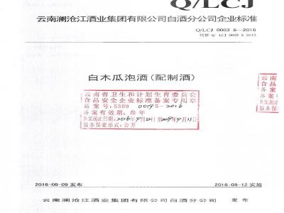QLCJ 0003 S-2016 云南澜沧江酒业集团有限公司白酒分公司 白木瓜泡酒(配制酒)