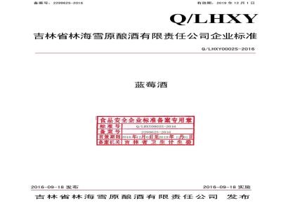 吉林省林海雪原酿酒有限责任公司企业标准Q/LHXY0002S-2016
