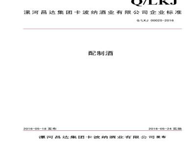 漯河昌达集团卡波纳酒业有限公司企业标准Q/LKJ0002S-2016