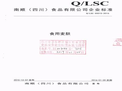 南顺(四川)食品有限公司企业标准Q/LSC0001S-2016