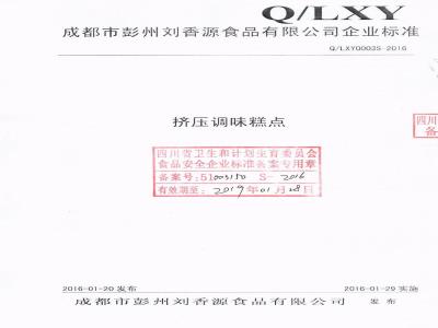 QLXY 0003 S-2016 成都市彭州刘香源食品有限公司 挤压调味糕点