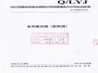 QLYJ 0001 S-2016 四川西昌东田食品有限公司凉源酒业分公司 食用菌泡酒(配制酒)