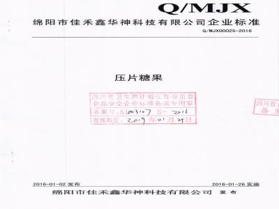 QMJX 0002 S-2016 绵阳市佳禾鑫华神科技有限公司 压片糖果