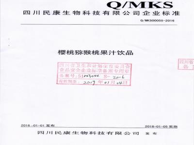 四川民康生物科技有限公司企业标准Q/MKS0005S-2016