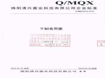 绵阳清兴菌业科技有限公司企业标准Q/MQX0001S-2016