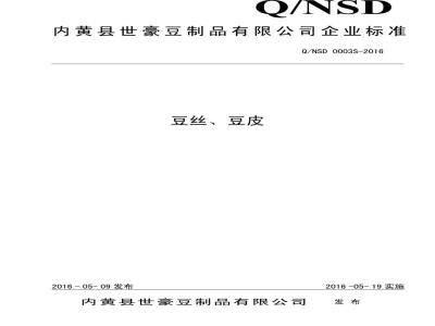 内黄县世豪豆制品有限公司企业标准Q/NSD 0003S-2016