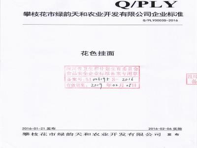 攀枝花市绿韵天和农业开发有限公司企业标准Q/PLY0003S-2016