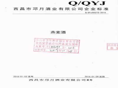 QQYJ 0001 S-2016 西昌市邛月酒业有限公司 燕麦酒