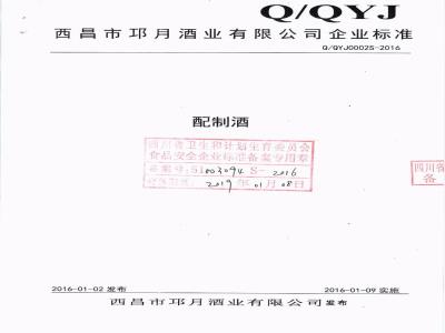 西昌市邛月酒业有限公司企业标准Q/QYJ0002S-2016