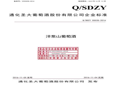 QSDZY 0003 S-2016 通化圣大葡萄酒股份有限公司 洋葱山葡萄酒