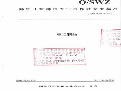 QSWZ 0001 S-2016 师宗旺哲种植专业合作社企业标准 薏仁制品