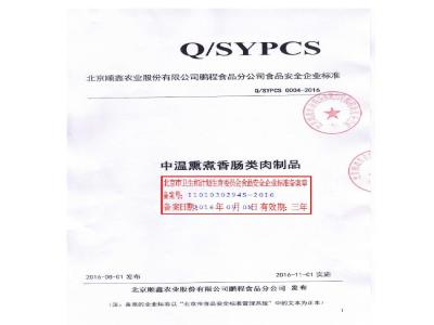 QSYPCS 0004-2016 北京顺鑫农业股份有限公司鹏程食品分公司 中温熏煮香肠类肉制品