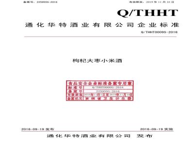 QTHHT 0009 S-2016 通化华特酒业有限公司 枸杞大枣小米酒