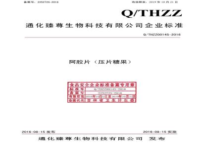 QTHZZ 0014 S-2016 通化臻尊生物科技有限公司 阿胶片(压片糖果)