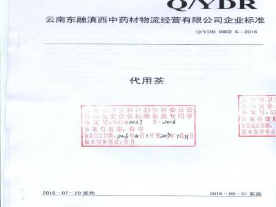 QYDR 0002 S-2016 云南东融滇西中药材物流经营有限公司中药饮片分公司 代用茶