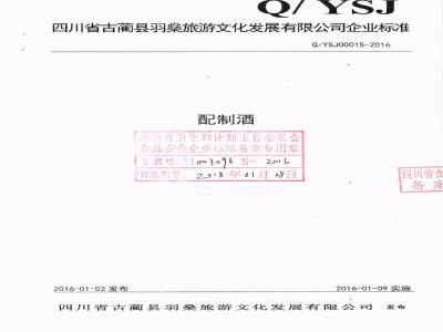 QYSJ 0001 S-2016 四川省古蔺县羽燊旅游文化发展有限公司 配制酒