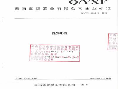 中文名称:云南宣福酒业有限公司企业标准 配制酒