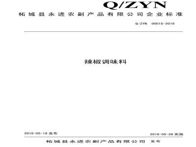 QZYN 0001 S-2016 柘城县永进农副产品有限公司 辣椒调味料
