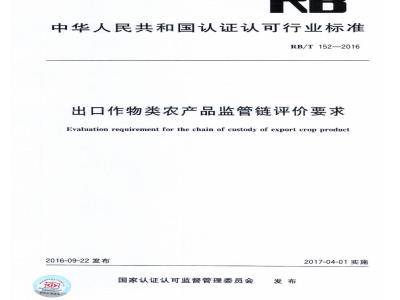 RB/T 152-2016 出口作物类农产品监管链评价要求