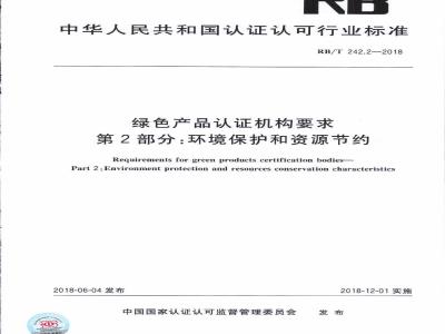 RB/T242《绿色产品认证机构要求》目前分为4个部分:第1部分:通则;