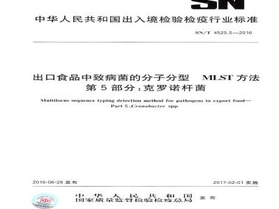 SN/T 4525.5-2016 出口食品中致病菌的分子分型MLST方法 第5部分:克罗诺杆菌