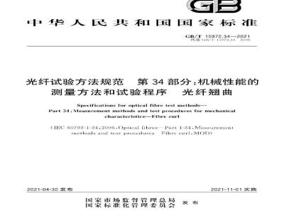 GB∕T 15972.34-2021 光纤试验方法规范 第34部分:机械性能的测量方法和试验程序 光纤翘曲
