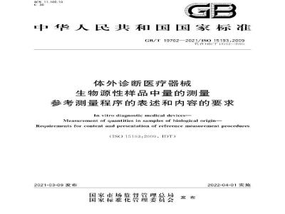 GR/T19702—2021/ISO15193:2009生物源性样品中量的测量