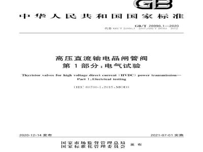 GB/T20990《高压直流输电品闸管阀》拟发布如下部分:第1部分:电气试验: