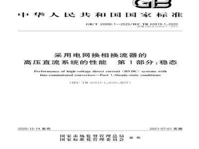 GB/T20996《采用电网换相换流器的高压直流系统的性能》分为3个部分:第1部分:稳态;